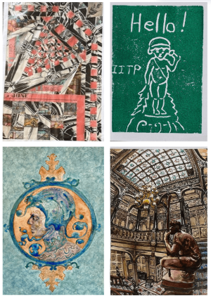 During the summer 12 artists from Open Age took part in a four-week workshop and competition at Two Temple Place, to design postcards to be sold in their gift shop. It was a very creative, engaging, and interactive process which provided members with the opportunity to share and refine their ideas while experimenting with various techniques including painting, block printing and collaging.